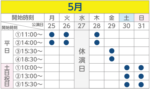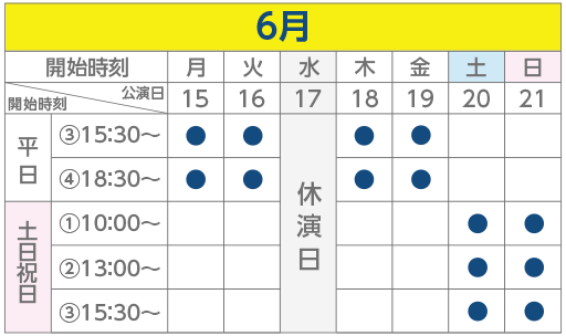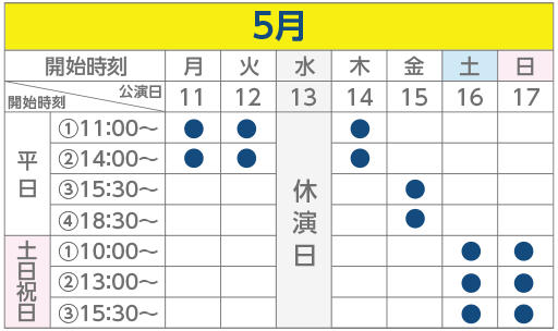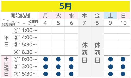 - ●印は公演時間です。ご確認の上ご来場ください。